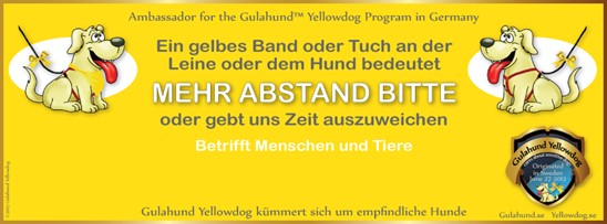 Und eine weitere Bitte: Macht die gelbe Schleife als Erkennungszeichen für Hunde, die Abstand brauchen, in eurem Ort, in eurem Park bekannt. In Deutschland kennen viel zu wenige Hundebesitzer bisher diese Kampagne.