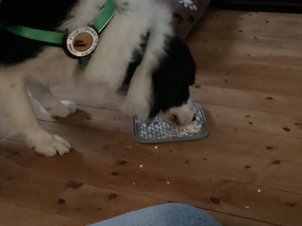 All das erfordert kein Kochen und nur wenige Vorräte. Man kann es auch (zusammen mit vielen anderen Sachen) in z.B. Silikon-Muffins-Formen füllen und damit eine andere Form einer „Schleckmatte“ anbieten.