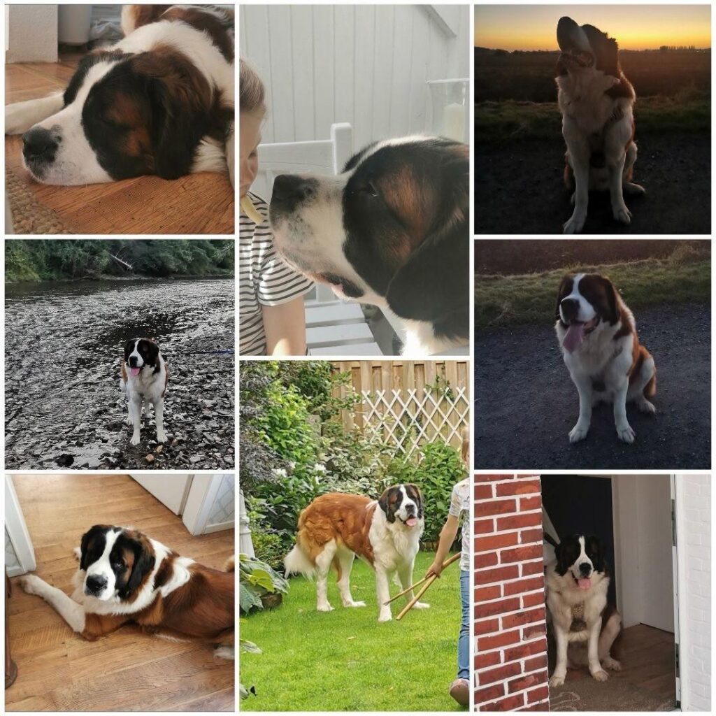 Vermittelt wird Bolle, ein 4 Jahre alter, unkastrierter Bernhardiner Bub. Bolle wird beschrieben als Traum-Kumpel. Er fährt gerne Auto und zeigt Spieltrieb bei anderen Hunden. Zu Hause ist er ruhig und lieb, außer bei Besuch – da ist er dann etwas aufgeregt. Es sollte an Leinenführigkeit und Rückruf gearbeitet werden.